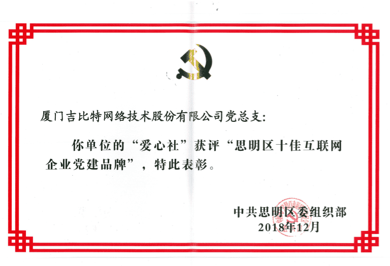 经初审评选、、网络评选和专家评审等环节,,"厦门918.com网络技术股份有限公司党总支-爱心社" 从全区28个参评党建品牌中脱颖而出,,获评"思明区十佳互联网企业党建品牌"。。。